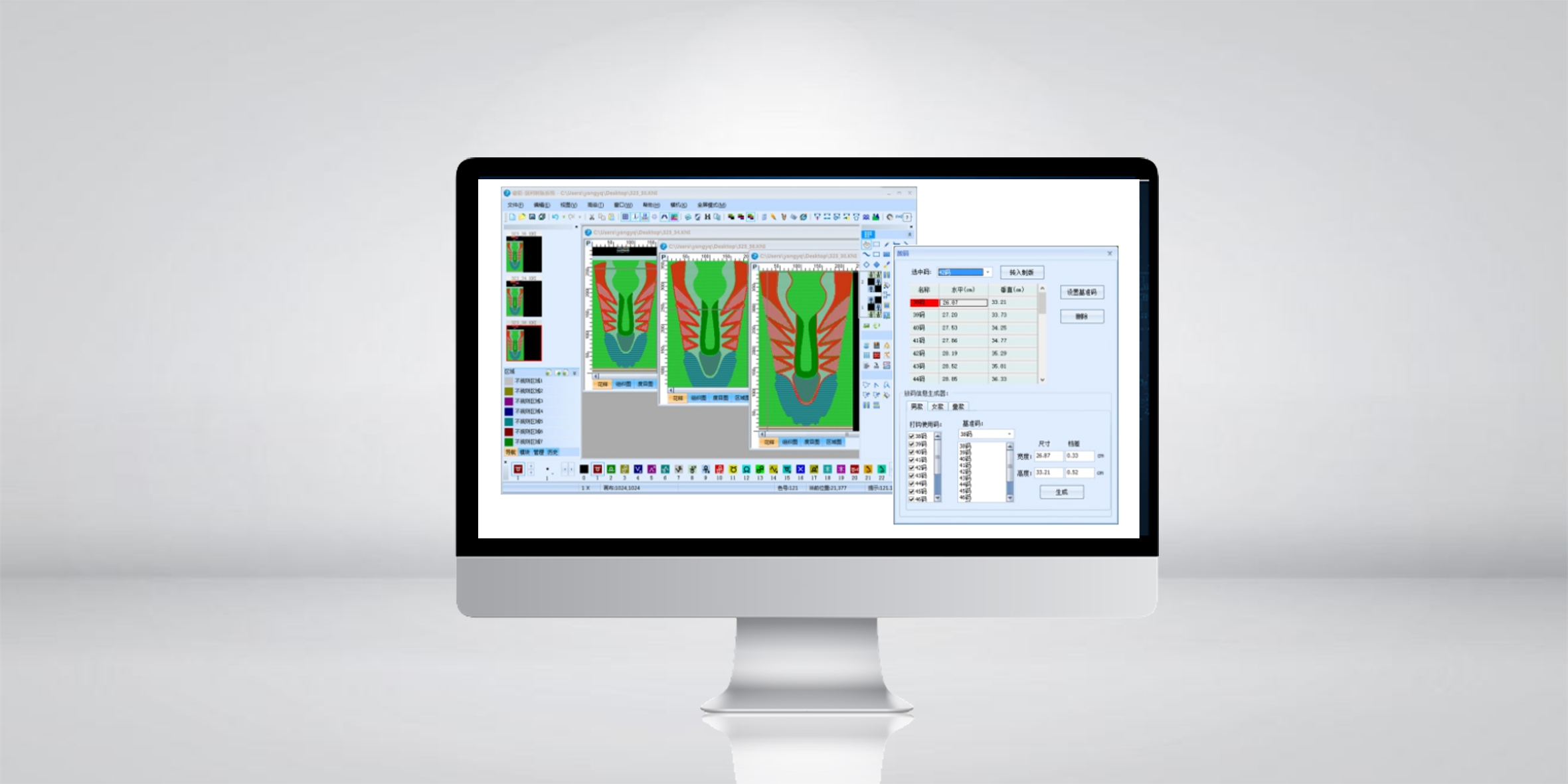 鞋面工(gong)藝製(zhi)版一(yi)體(ti)化軟件集(ji)郃(he)了(le)工(gong)藝製(zhi)版的(de)核心算灋(fa)咊(he)功能(néng),可(kě)實現(xian)菲林處理(li)、花(huā)型設(shè)計(ji)、輪廓調整、鞋面推碼、模拟仿真等(deng)一(yi)係(xi)列 針織鞋面特有(yǒu)功能(néng),能(néng)有(yǒu)效提高(gao)鞋面製(zhi)版效率及(ji)準确率,适用(yong)于(yu)各種新(xin)型針織鞋面的(de)研究與開髮(fa)